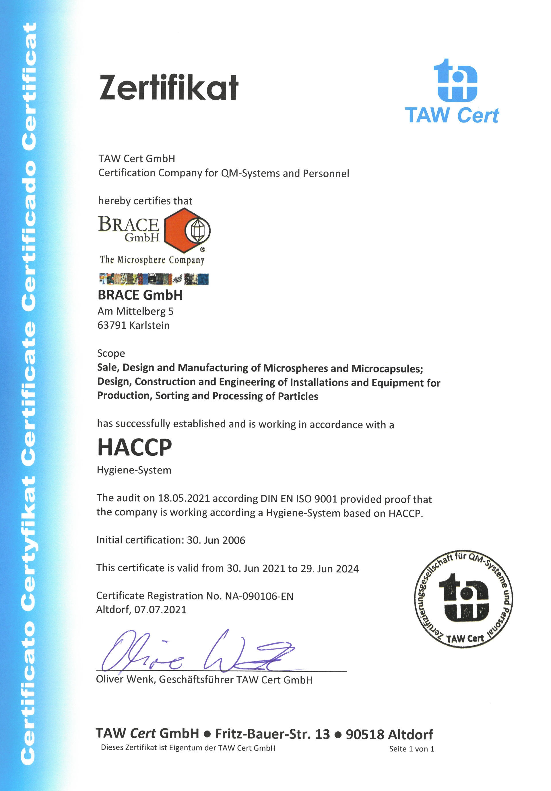 As FSSC22000, EcoVadis, ISO9001 and HACCP-certified Company, BRACE is committed to highest quality standards to the full satisfaction of our customers.